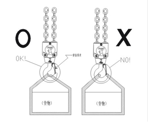 1、勿以吊鉤末端吊物應(yīng)掛入安全舌片內(nèi)以策安全如下圖: