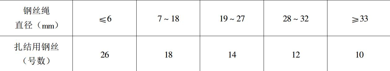 扎結(jié)鋼絲的規(guī)格,可按鋼絲繩直徑大小選擇,一般如下列: