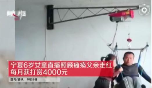 日前看到網(wǎng)絡上這樣篇文章,是6歲女童直播照顧癱瘓父親,依靠每月四千打賞生活,這是一個堅強的故事,讓我們來回顧一下這個事情的原委: