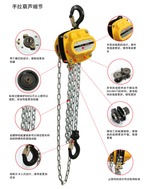 3、 符合人體設(shè)計工學(xué)的手柄使該葫蘆易于操作。